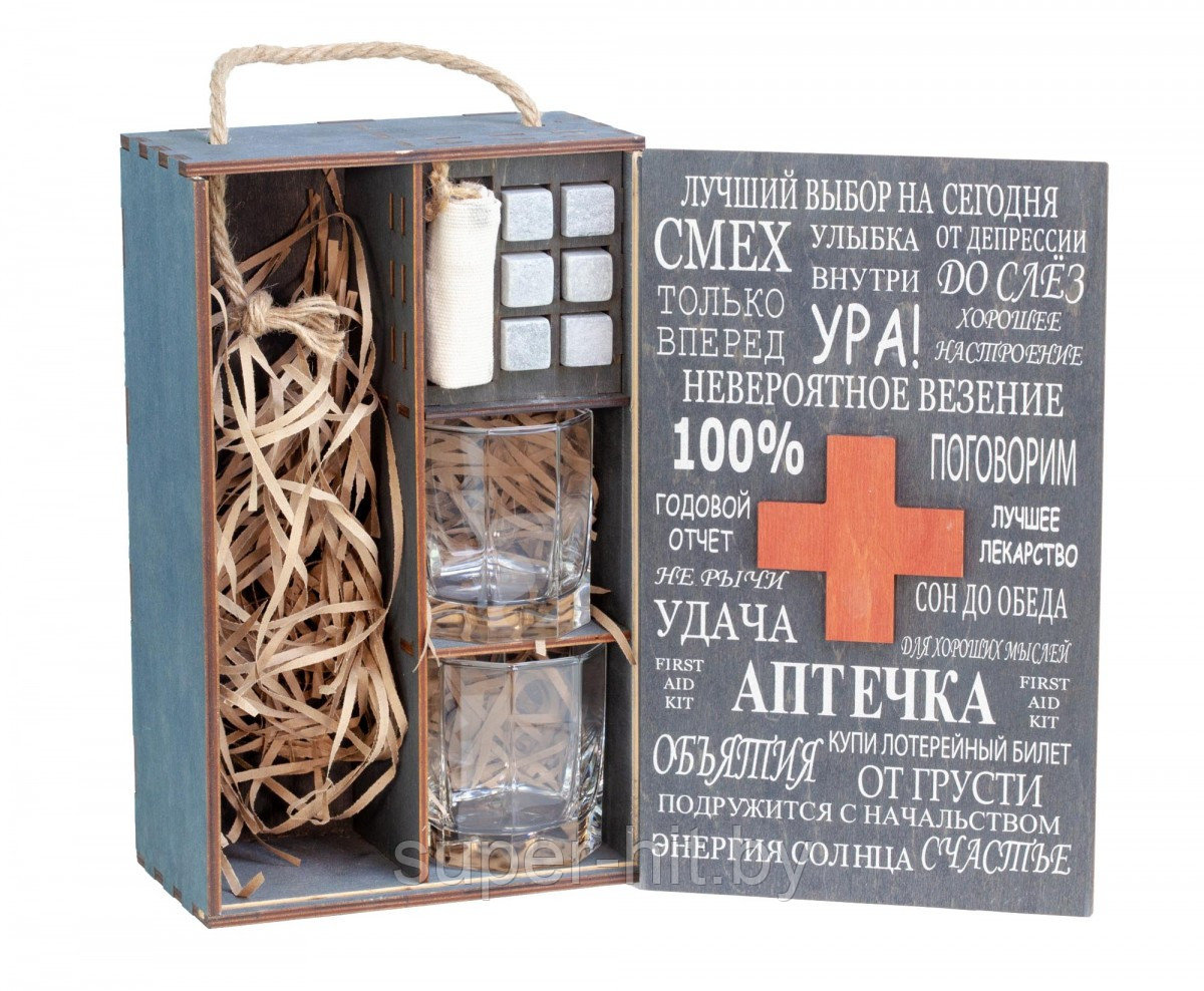 Оригинальный и необычный подарочный набор для мужчин в деревянной упаковке из фанеры.